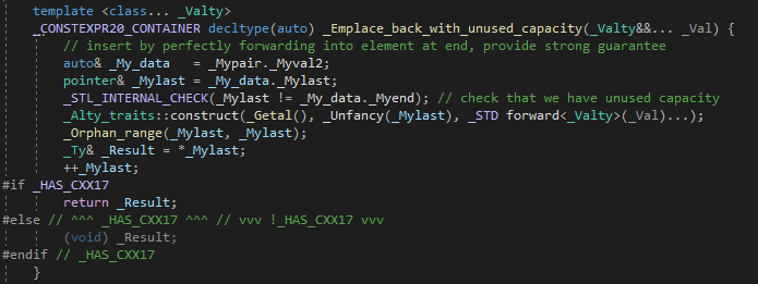 또한 C++17에서부터는 emplace_back을 사용하면, 삽입된 요소에 대한 참조를 반환합니다. 이를 사용할때도 사용합니다.