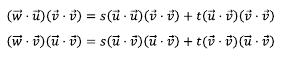 이 세 벡터를 각각 u, v, w로 표시하면 위 식은 다음과 같이 정리된다.