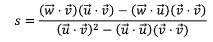 다시 예전 식으로 돌아가서 s에 대해 정리하기 위해 양변에 (v dot v)와 (u dot v)를 곱해보자
