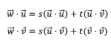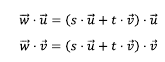 벡터 w에 u와 v를 내적하면 다음과 같은 수식이 나온다.