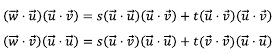 $$\vec{w} = s\cdot\vec{u} + t\cdot\vec{v}$$