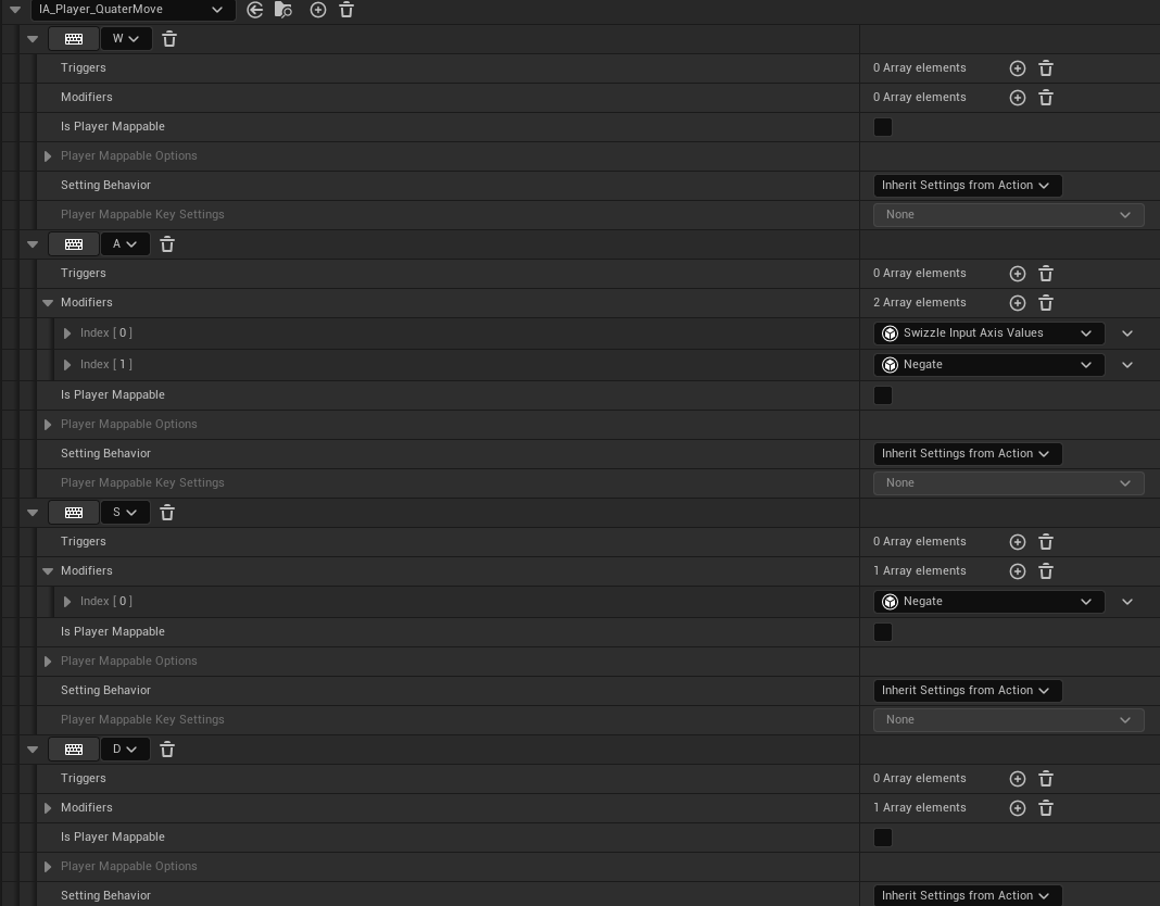 A와 D는 유심히 확인해야 하는데, Swizzle Input Axis Value라는 Modifiers가 붙었다.