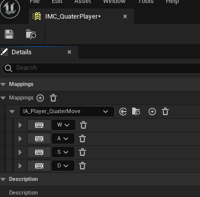 InputMappingContext이다. 해당 InputAction에서 어떠한 입력들이 매핑될 것인지를 설정한다.
