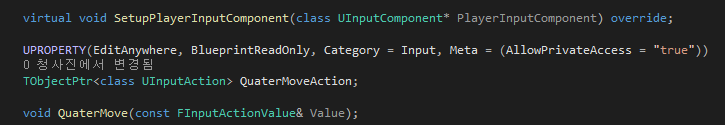 자신이 움직임을 처리할 폰(캐릭터) 클래스의 헤더에서 다음과 같이 작성하자.