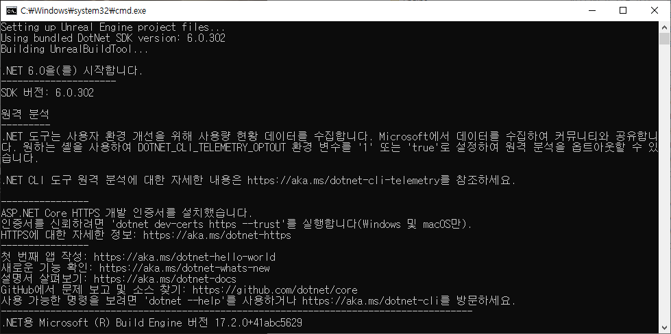 일단 처음으로 'Setup.bat' 파일을 실행해, 언리얼 엔진용 바이너리 콘텐츠와 필수 구성 요소등을 설치한다.