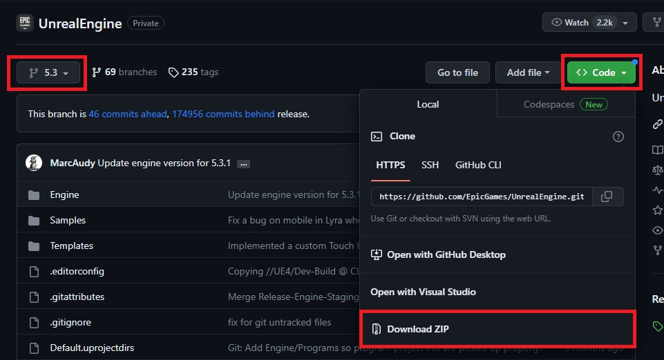 초대 받았다면, 엔진 코드를 다운로드 받아야한다. UnrealEngine의 repository를 확인해보자