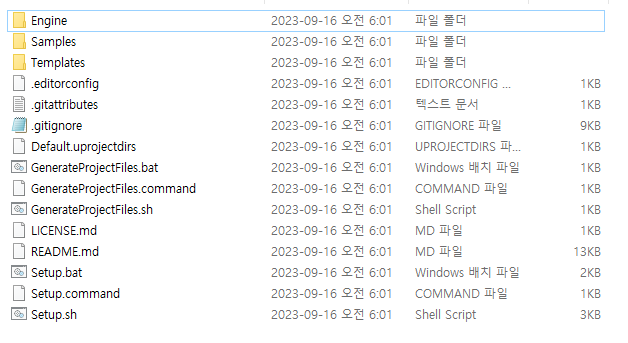 해당 파일을 다 설치했다면, 다음은 'GenerateProjectFiles.bat' 파일을 실행해 프로젝트 파일을 생성한다.