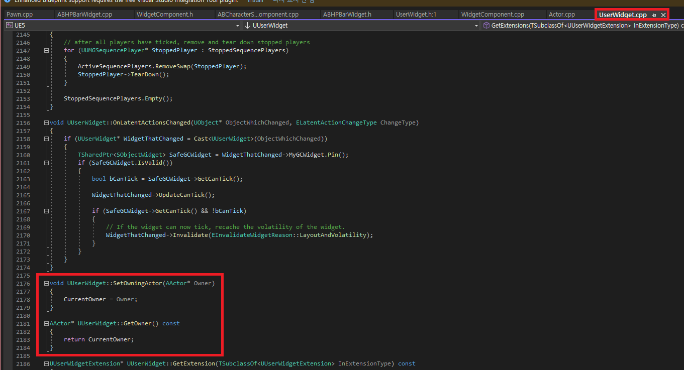 기존의 UserWidget이 GetOwner 함수가 없다는 것은 알고 있을 것이다.