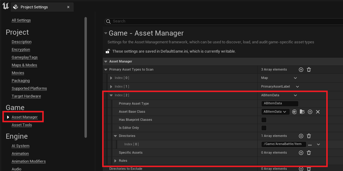 우리가 Project Settings에서 AssetManager에 데이터를 추가할때는 동적으로 추가된다.