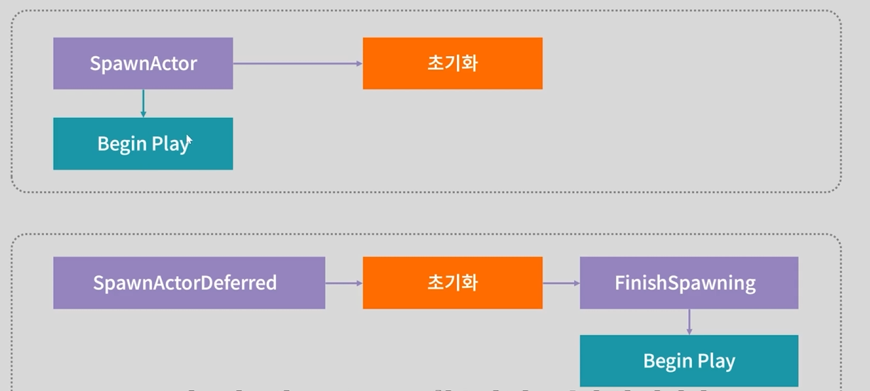 이때 SpawnActor와 SpawnAcatorDeferred의 차이에 대해서 코드로 확인해보자.