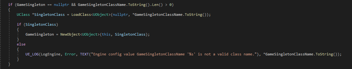 이를 위해, 언리얼엔진은 Game Singleton Class를 제공한다.