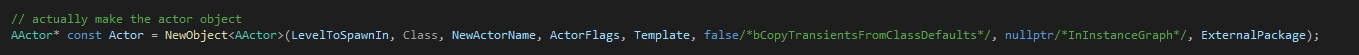 결론적으로 말하자면, SpawnActor에서 Actor를 생성할 때도 NewObject를 사용한다.