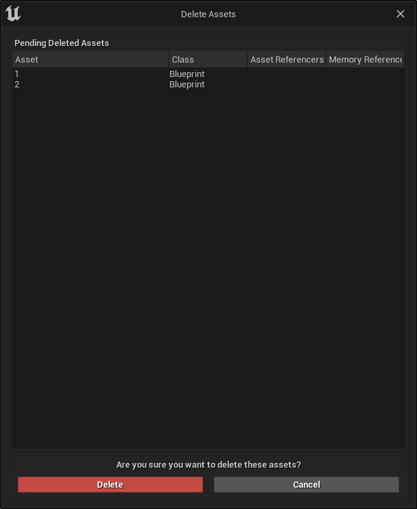 그냥 삭제하기에는 알림 기능이 없으므로, Editor의 힘을 빌려 ObjectTool에서 특정 알림을 낼 수 있다.