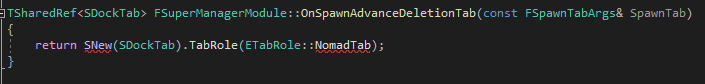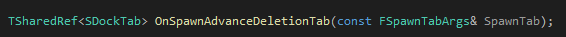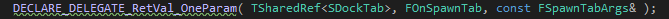 FOnSpawnTab 객체를 확인해보면, Delegate임을 알 수 있습니다. 이에 맞춰서 함수를 하나 만들어 바인딩 해주어야 합니다.