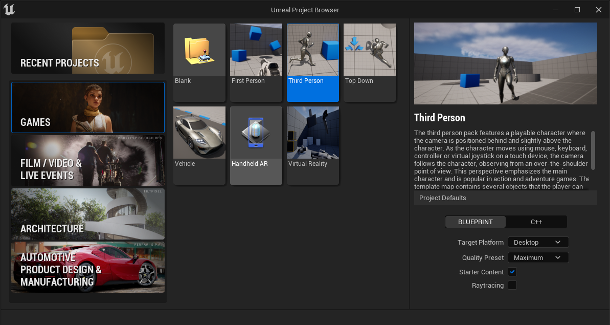 즉, 프로젝트 템플릿인 Blank, First Person, Third Person, Top Down, Vehicle Advanced 에서만 나타난다.