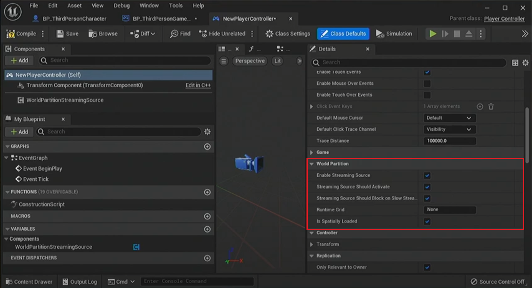우리의 PlayerController에도 World Partition에 대한 정보가 있습니다.