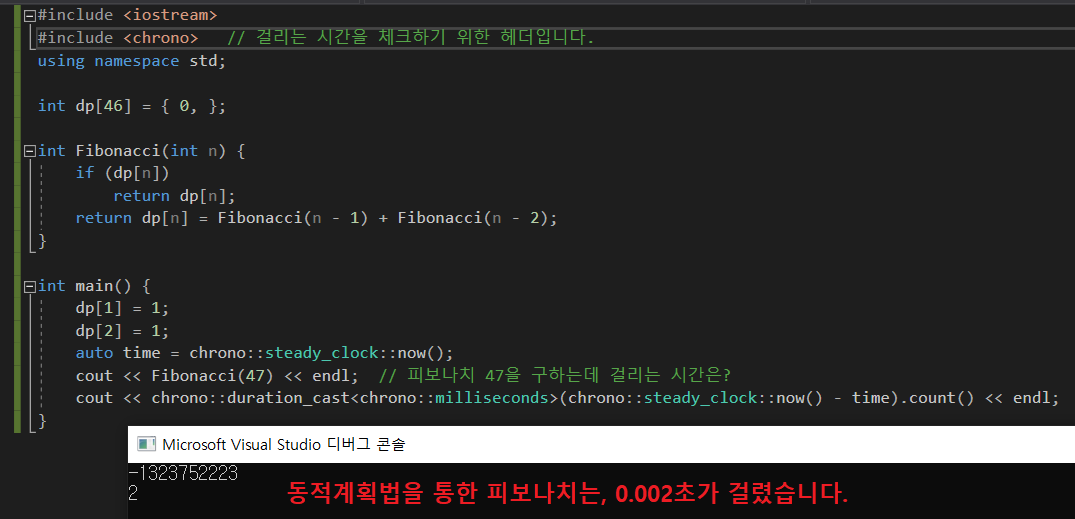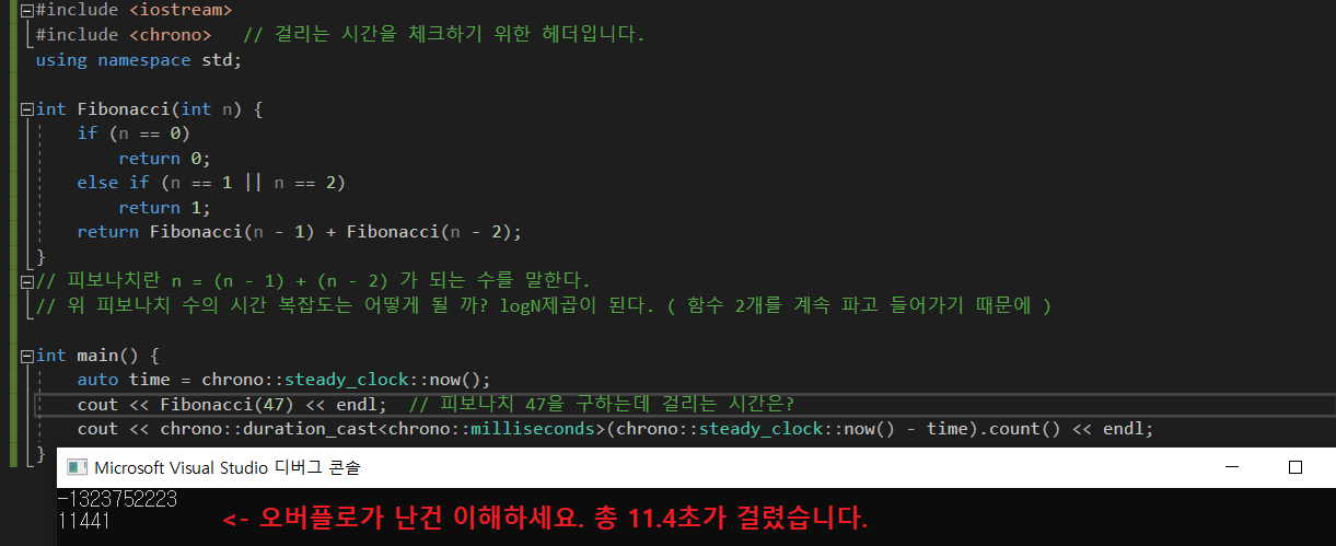 이는 재귀를 계속 파고 들어간다는건데, Fibonacci(47) 을 구하게 되면