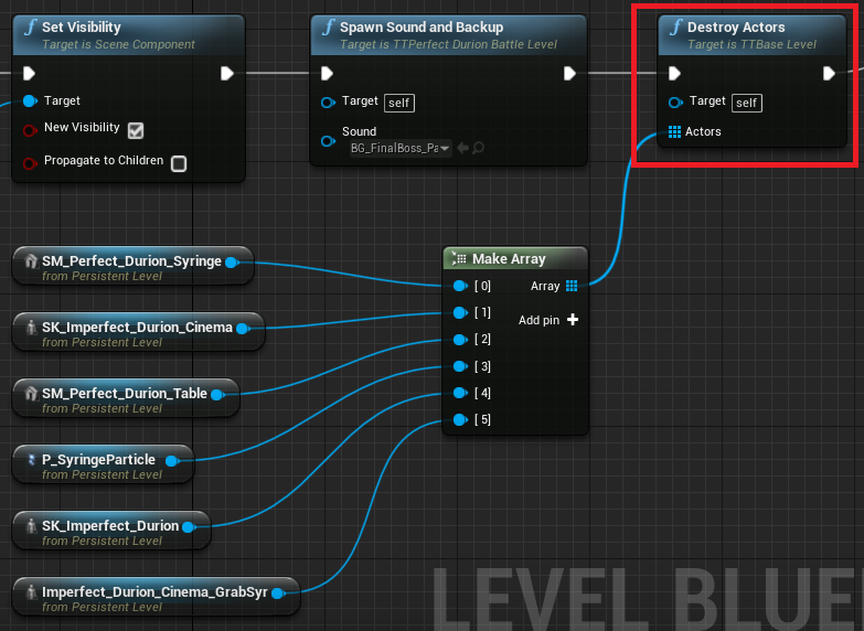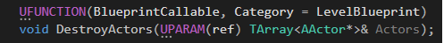 다음은 Actor들의 Reference를 받아 Destroy 시키는 DestroyActors 함수이다.
