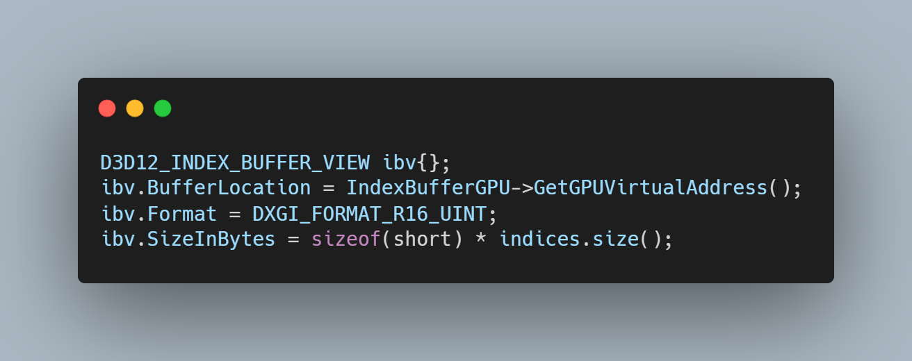 Vertex Buffer View 와 다른점은, Stride를 사용하지 않는단 점인데 이는