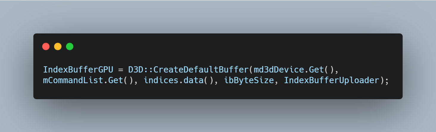 CreateDefaultBuffer ( 위의 Default Buffer를 생성해내는 소스와 동일 ) 에서는 실제로 Upload Buffer에서 Default Buffer로 자원을 복사 ( Copy ) 하는 행위를 하므로, Buffer를 생성한 후 Execute 한번만 실행하면 된다.