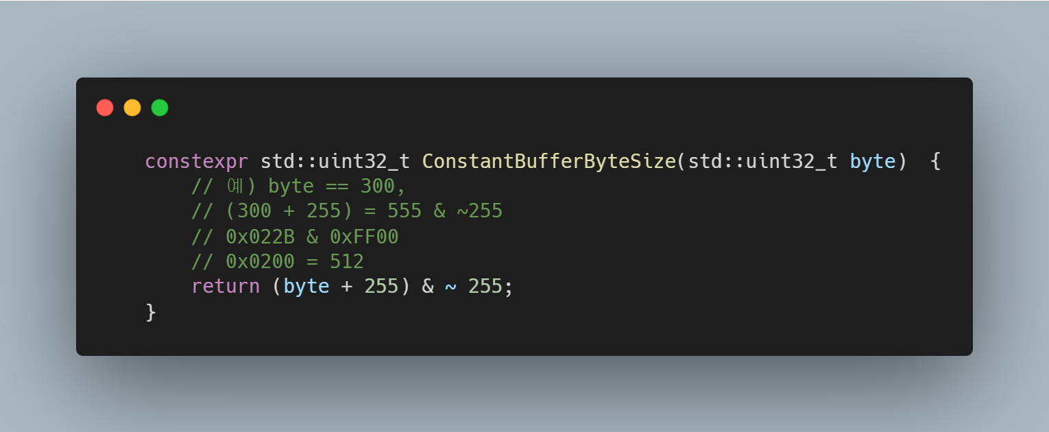 주의 : ByteSize는 최소 하드웨어 할당 크기 ( 256 바이트 ) 의 배수가 되게 만들어야 한다.