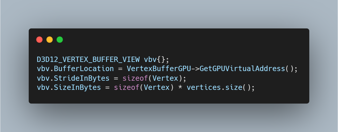 이제 Vertex Buffer를 생성했으니, Vertex Buffer의 정보를 알려주기 위해 Vertex Buffer View를 생성한다.