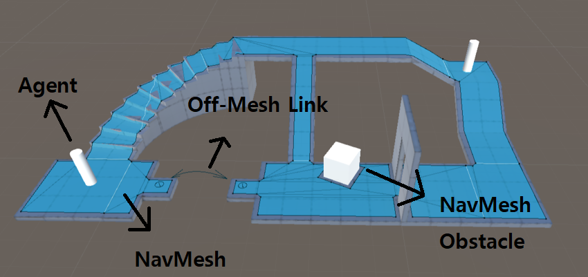 - NavMesh를 이용하여 탐색 이동할 수 있는 객체 - Off-Mesh Link: