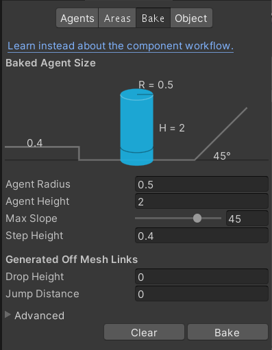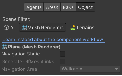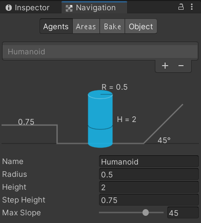 - Navigation Area : Areas 탭에서 작성했던 영역들을 설정하는 곳