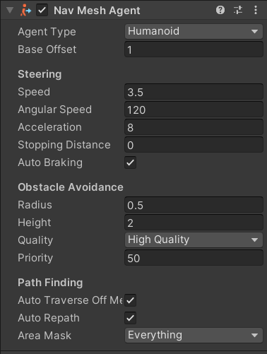 - Agent Type : Navigation Mesh를 설정할 때, 생성했던 Agent 목록의 타입입니다.
