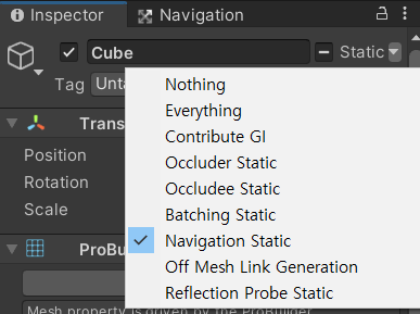 - Navigation Static : 정적인 오브젝트인가?