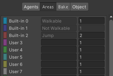 기본적으로 Walkable, Not Walkable, Jump가 제공되며 사용자가 직접 Name과 Cost를 작성할 수 있다.