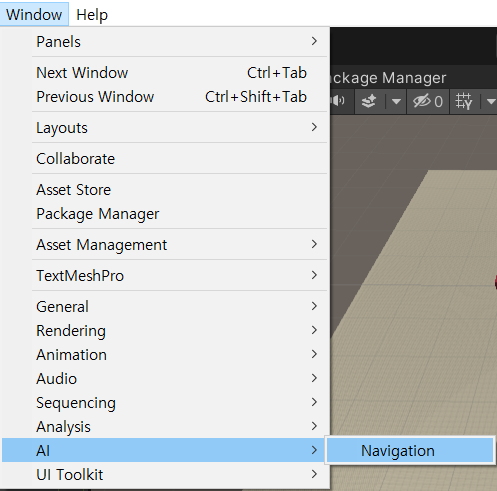 Window -> AI -> Navigation을 클릭한다.
