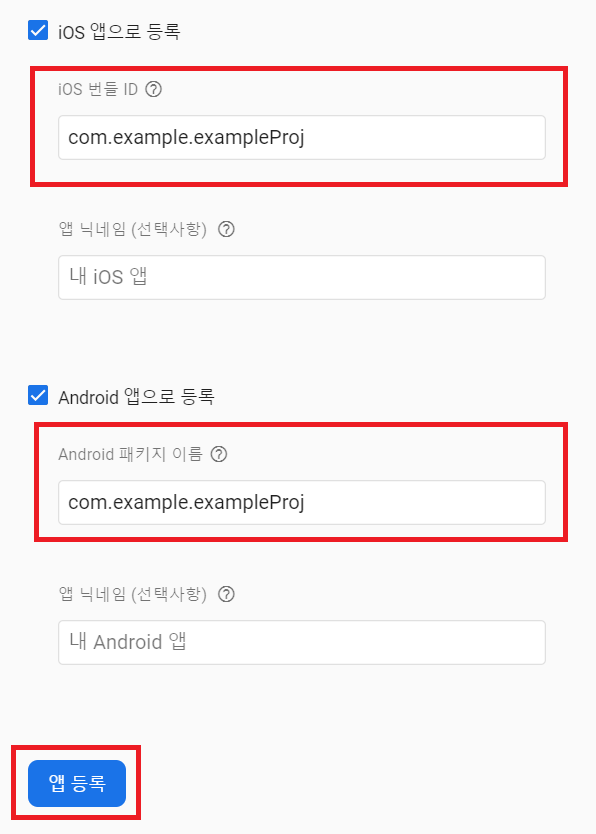 만약 자신이 둘 다가 아닌, 하나의 플랫폼만 사용한다면 하나의 앱만 등록하면 됩니다.