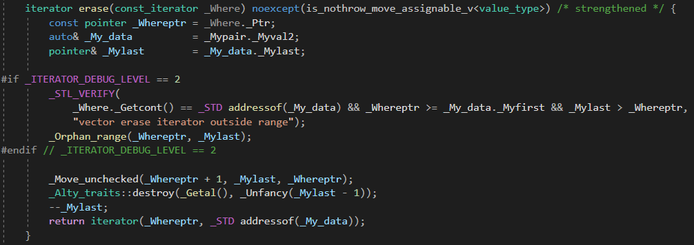 간단히 std::vector<int> 에서 요소를 삭제한다고 생각해봅시다.