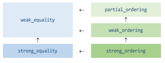 강한, 약한 순서는 위와 같습니다. 강하고 약하다는 것은 operator== 와 operator!= 에만 관련있습니다.