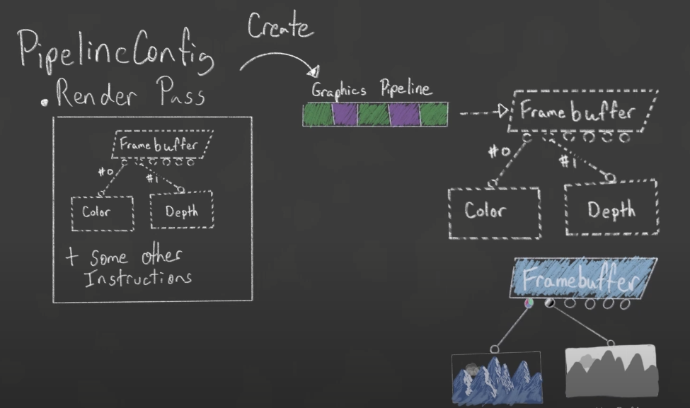 그리고 Render Pass의 Attachment에 대응해서 실제 리소스인 FrameBuffer가 바인딩 된다.