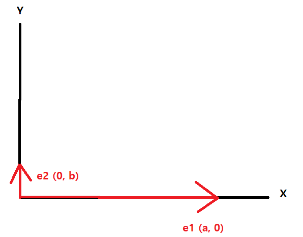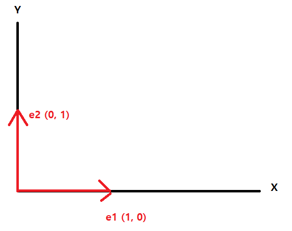 이를 위해 (1, 0) 좌표를 갖는 e1 과 (0, 1) 좌표를 갖는 e2 표준기저벡터를 생각해보자.