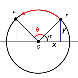그럼 P'(x', y')는 $$\alpha$$에 $$\theta$$ 를 더 한 것이므로
